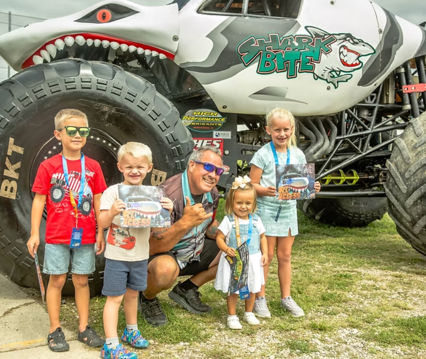 Beyond the main event, the weekend is designed as a complete family entertainment experience. Kids can participate in Power Wheels races and meet drivers during the pre-show Pit Party, where attendees can take photos and collect autographs beside the massive trucks. Guests can also ride in a real monster truck for a once-in-a-lifetime thrill, browse vendors and merchandise, and enjoy food throughout the day.