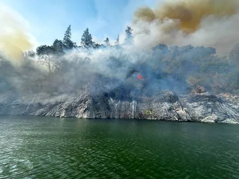 The fire was growing mostly in the Flat Creek and Gray Rocks areas. By July 8, almost a week later, aircraft had completed 112 retardant drops, each drop containing 1,000 to 3,000 gallons. Helicopters had made more than 200 water drops on hot spots. “Firefighters are operating in some of the most challenging and difficult terrains in northern California, where access is only possible by boat across Shasta Lake, then by hiking in for over two hours,” the USFS wrote. The crews were dealing with extreme heat and steep slopes.